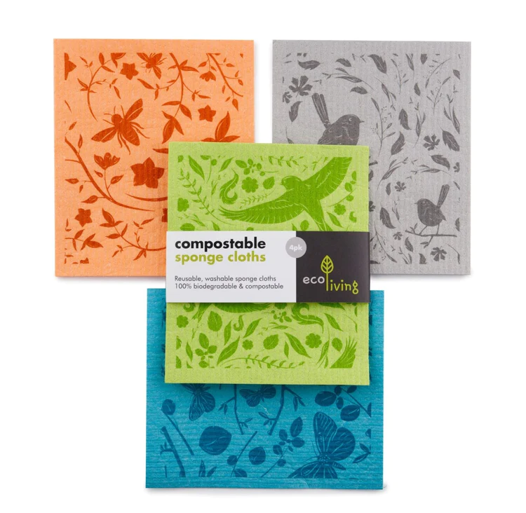 Compostable sponge cleaning cloths, 100% plastic-free and made of natural renewable resources.